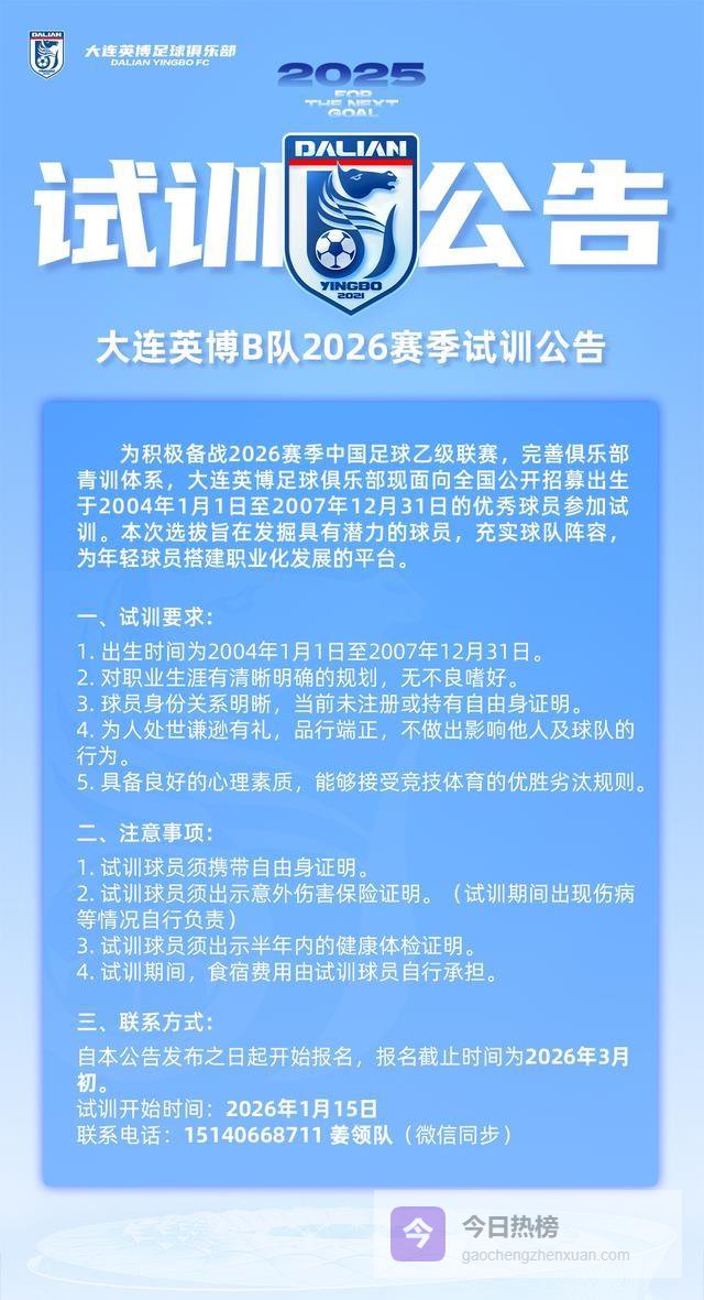 看看英博B队2026年1月份那个“面向全国”的试训公告,条件写得明明白白:04-07年龄段,食宿费用自理。这什么意思?意思就是你来试训,不仅要自带干粮,万一伤了还自己负责。在职业梯队选拔普遍承担食宿甚至给补贴的当下,这种“抠门”姿态本身就说明,他们在用最低成本做人才筛选。