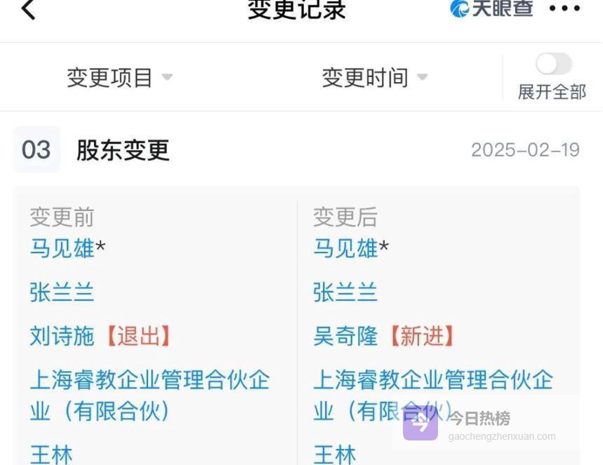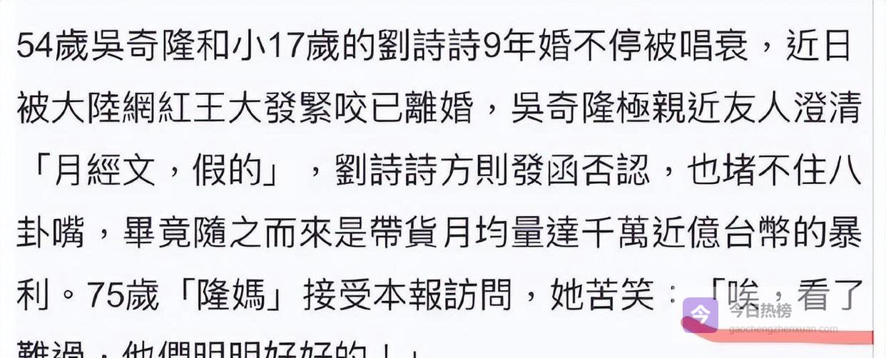 还有一种传闻说,吴奇隆公司股权调整,意味着他们财产分配上的某些变化。
