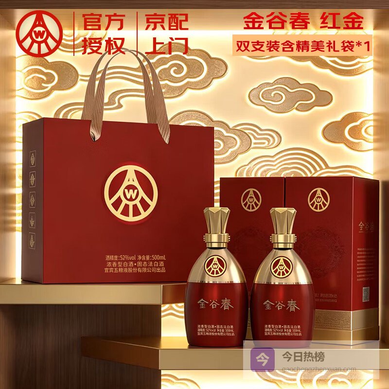 五粮浓香【五粮液出品】高度优质白酒 纯粮酿造【过年送礼】 52度 500mL 2瓶 金谷春礼盒装¥