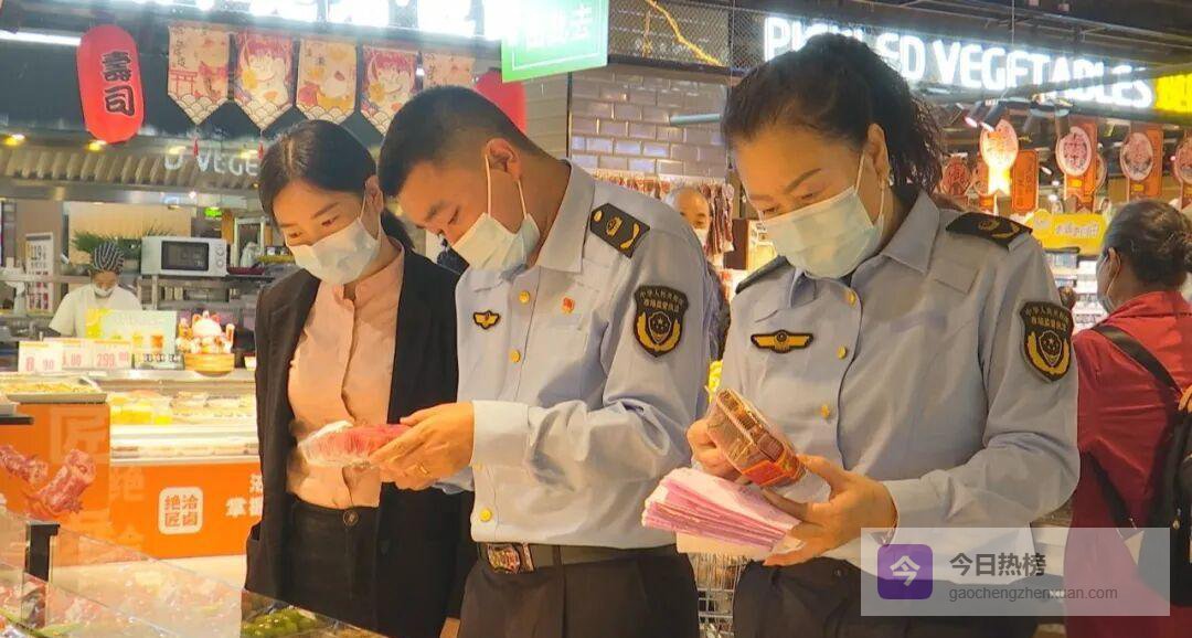 在城区某大型超市,执法人员逐架巡查粮油、生鲜、禽肉,重点核对生产信息、进货票据、检验报告“三件套”;对节日热销的坚果、糕点、熟食进行价格比对,防止“借节涨价”。现场暂未发现过期、变质或来源不明食品。