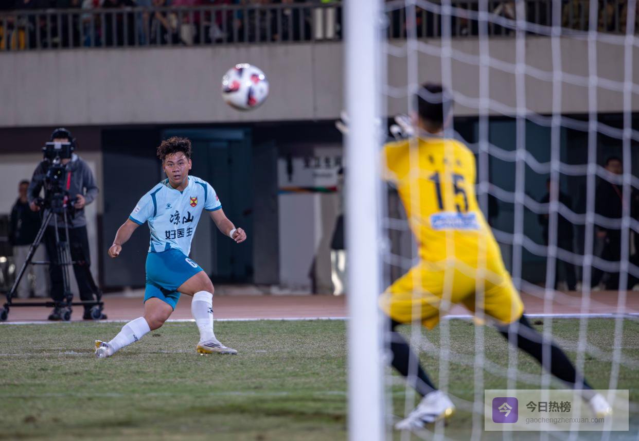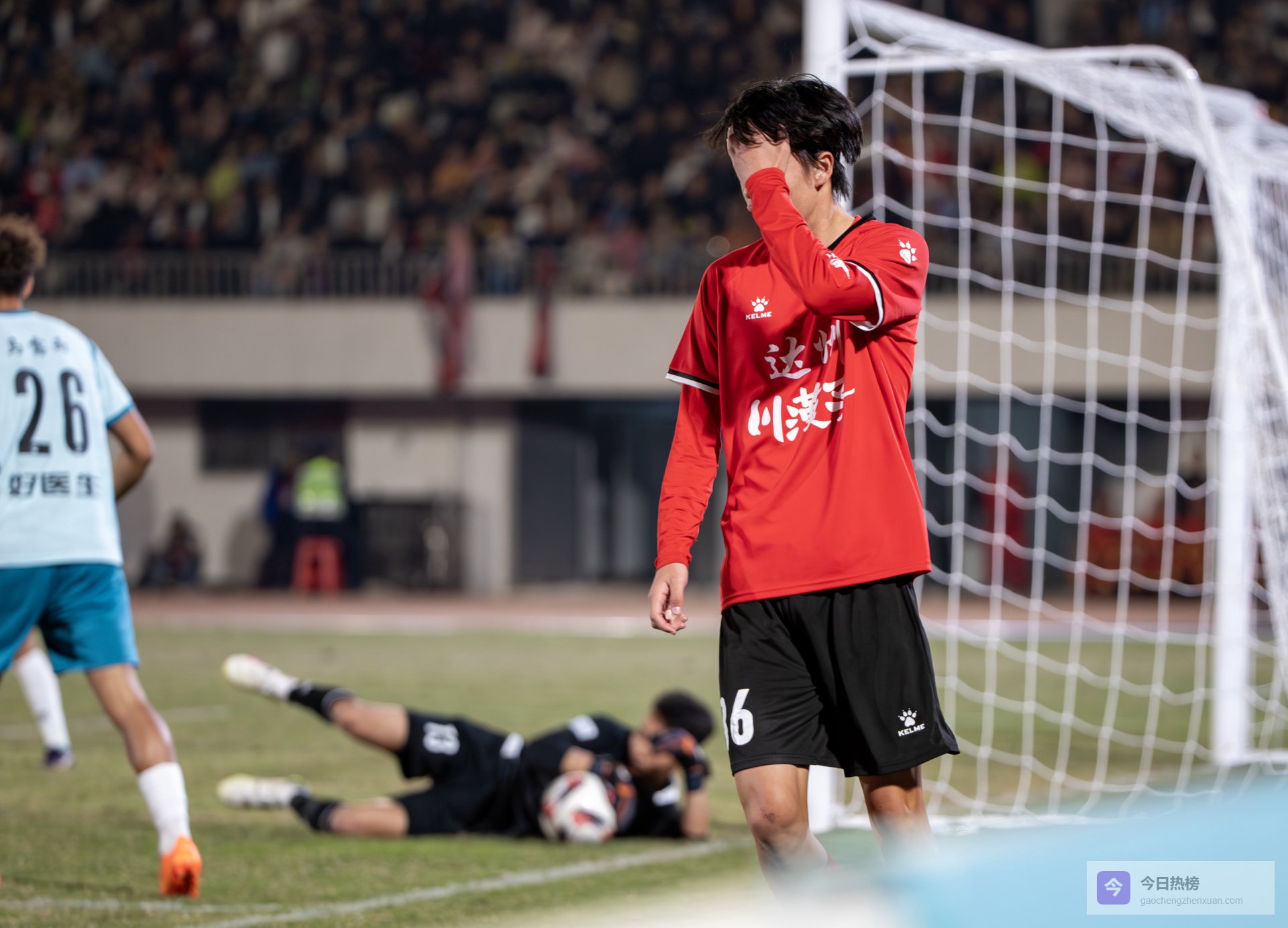 第28分钟,凉山好医生队抓住定位球机会,65号球员比机陈林一脚精准射门,成功攻破达州队球门,率先打破僵局。落后的达州队并未气馁,反而激起了更强的斗志,下半场攻势愈发猛烈,多次创造进球良机,球员们始终没有放弃,在全场球迷的呐喊助威中,持续向对方禁区施压。直到第74分钟,达州队凭借一记漂亮的任意球,由27号球员谢紫靖破门得分,将比分扳为1:1。
