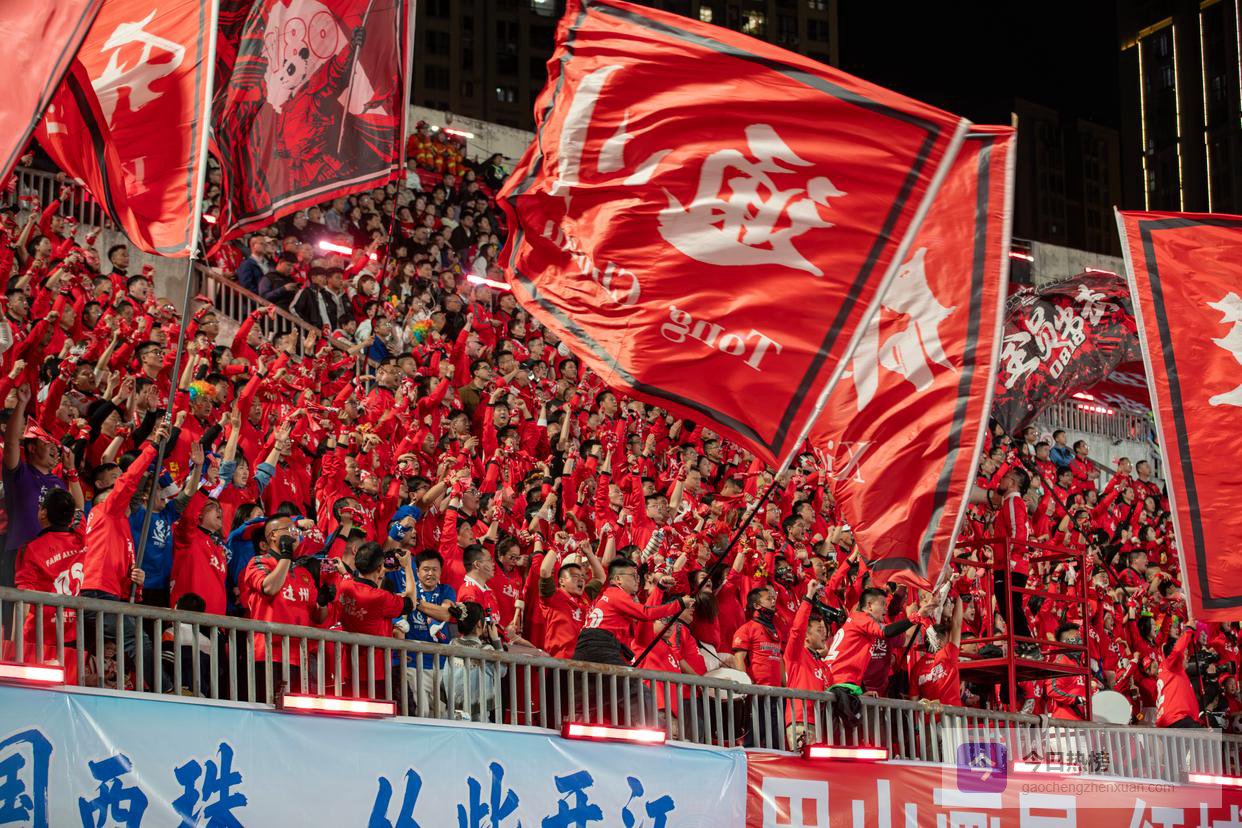 球迷的热情,是这场揭幕战最动人的底色。主场作战的达州球迷身着红衣,将体育场打造成一片红色海洋,“达州,雄起”“敢打敢拼川汉子、不胜不休达州队”的呐喊声此起彼伏,震彻全场;远道而来的凉山球迷也毫不示弱,组织了数百人的助威团,“凉山州,加油”“凉山得啦”的口号与达州球迷的呐喊交织,形成独具特色的赛场交响。看台上,球迷们挥舞着球队旗帜、擂鼓助威,手中的荧光棒连成星海,每当球队发起进攻、完成防守,现场便会爆发出雷鸣般的欢呼,哪怕是错失进球的遗憾,也被球迷们的鼓励声化解,这份纯粹的热爱,正是城市足球联赛最动人的烟火气。