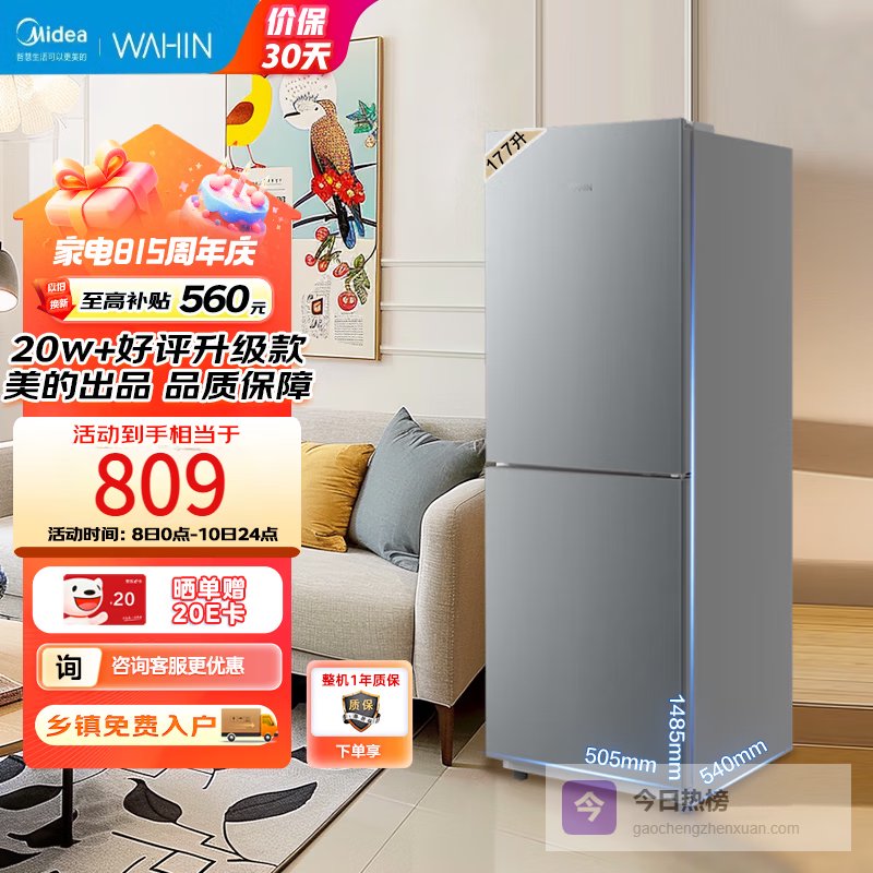 美的(Midea)出品华凌冰箱239升家用冰箱三门三温三开门风冷无霜271升双变频冰箱一级能效小型家用冰箱补贴20% 美的出品(华凌)177/180升 双门 直冷微霜¥