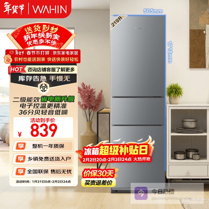 【空间合理利用】这款华凌HR-229T冰箱总容量达到219升,三门设计帮你划分出冷藏、冷冻和软冷冻三个区域,存东西更有条理。不占地面积只有0.29平米,放在小户型里倒是挺合适,既能存够东西,又不会觉得占地方。
