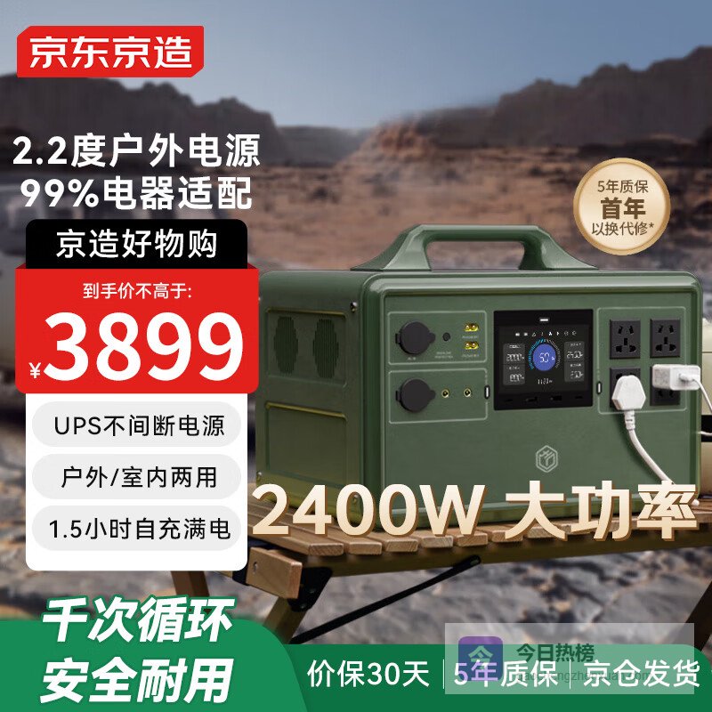 推荐第1款:京东京造2400W移动户外电源大容量应急电源
