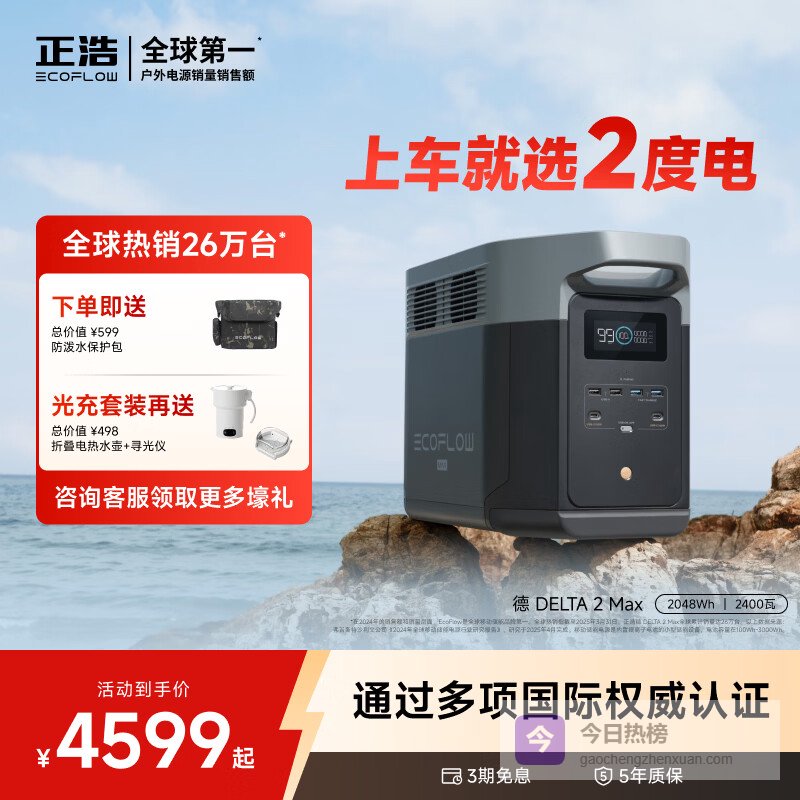 推荐第10款:ECOFLOW正浩德2max移动电源220V大容量应急储能应急电源