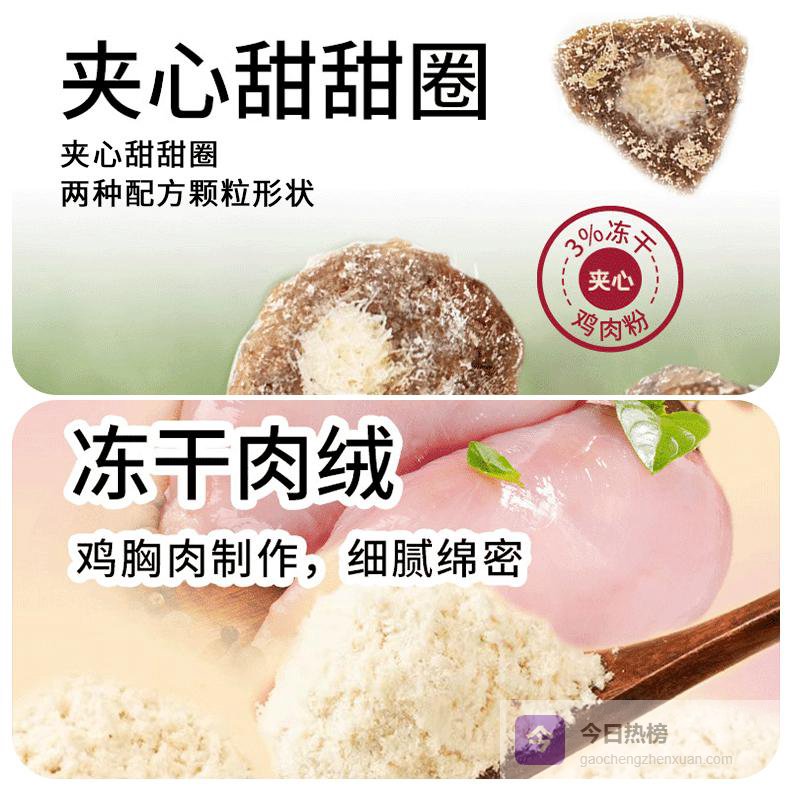 5️⃣口感丰富的双层颗粒:多种形状与口味的颗粒设计,增添就餐乐趣。夹心鸡肉绒与冻干鸡肉相结合,让狗狗的用餐体验更加多样,更能满足它们挑剔的味蕾。