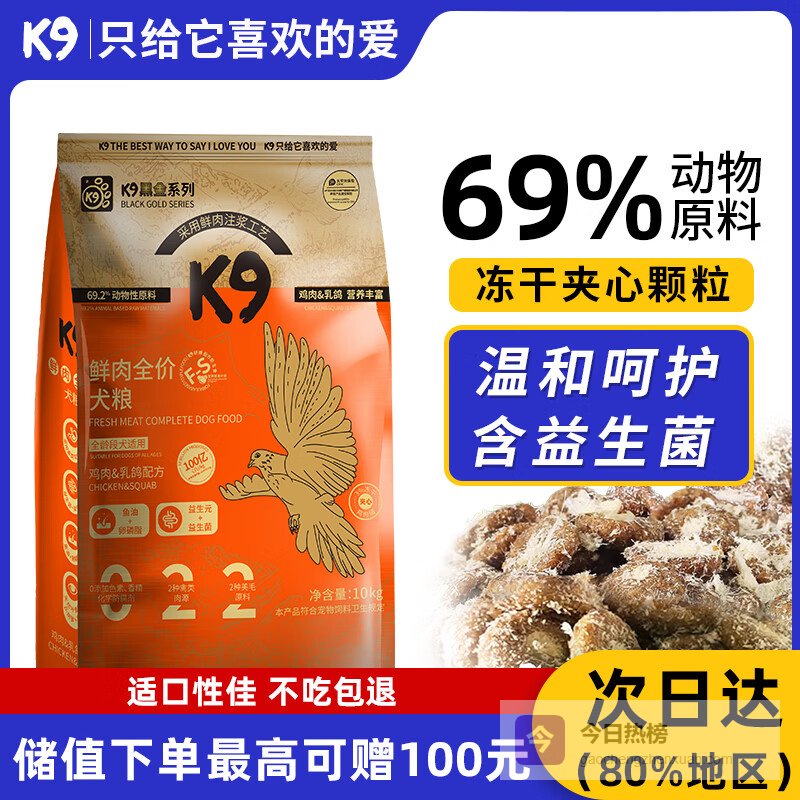 【京东自营】K9狗粮冻干鸡肉绒夹心鲜肉酶解成幼犬通用鸡肉乳鸽配方10kg/20斤¥