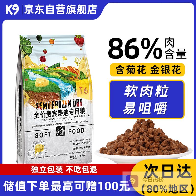 【京东自营】K9软狗粮老年犬成犬泰迪专用粮半冻干无谷鲜肉犬粮1.5kg/3斤¥