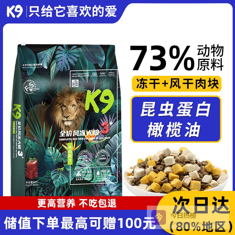 【京东自营】K9狗粮风干冻干三拼昆虫蛋白小型犬中大型成幼犬通用8kg/16斤¥