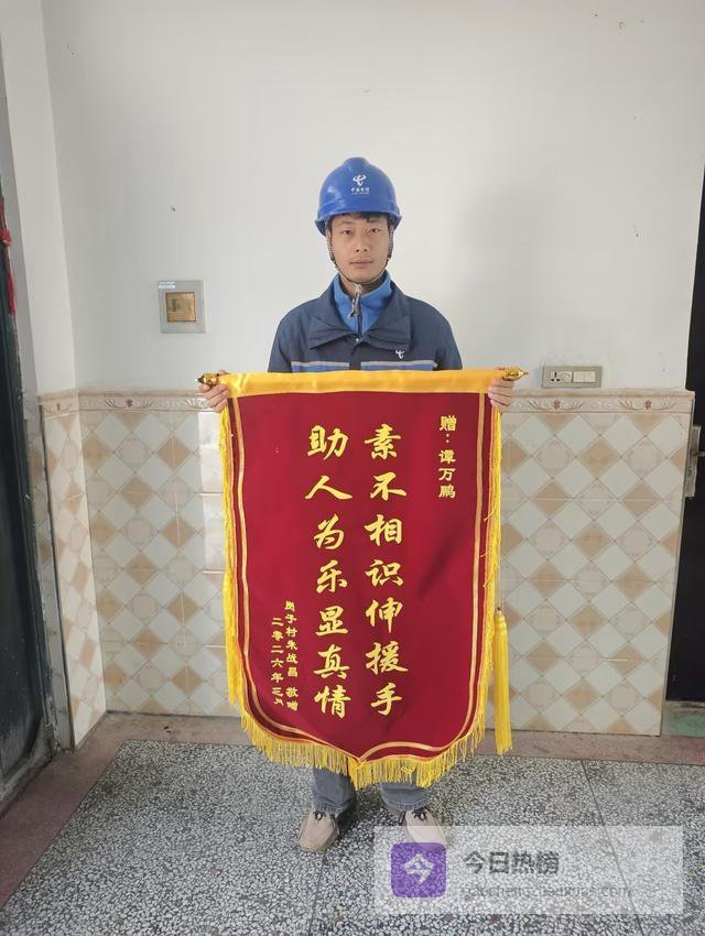 “终于找到你了!谢谢你救了我的家人!”近日,中国电信咸阳武功分公司营维人员谭万鹏收到了一份特殊的礼物——一面写有“素不相识伸援手 助人为乐显真情”的锦旗。被救群众的家属专程前来,紧紧握住他的手,手心传来微微颤抖的温度,一遍遍表达着感激之情。这位平日里默默穿梭于街巷的电信装维师傅,怎么也没想到,自己一次“分内”的挺身而出,会被对方如此记挂。