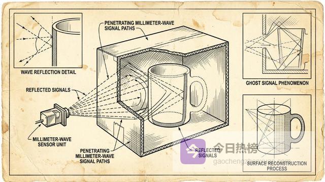A:毫米波信号与Wi-Fi使用的信号类型相同,具有穿透干式墙、塑料和纸板等常见障碍物的能力,并能从隐藏物体表面反射回来。研究人员通过分析这些反射信号的特征,结合生成式AI模型来重建被遮挡物体的完整3D形状。