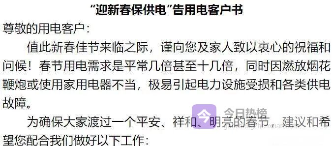 城区电力服务热线“4588110”“4688110”春节不打烊,全天候受理报修、咨询和投诉。出现跳闸、冒烟、焦糊味等异常,先断电再拨打,安全用电才有幸福年。
