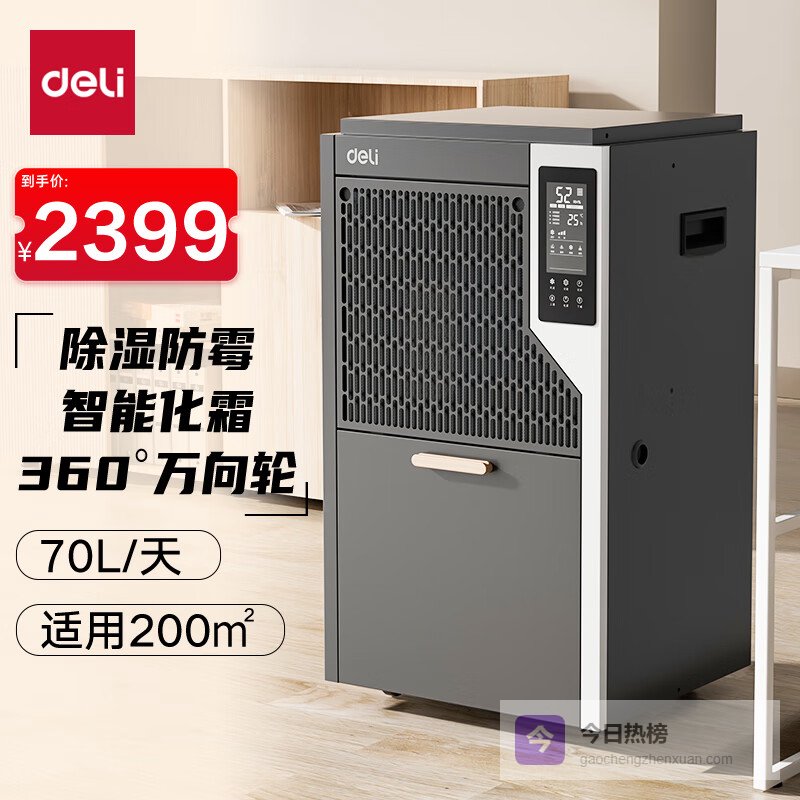 【品牌直营】得力除湿机抽湿机家用地下室复式别墅工业商用仓库车间大功率工业吸湿除湿机器70L/天适用2¥
