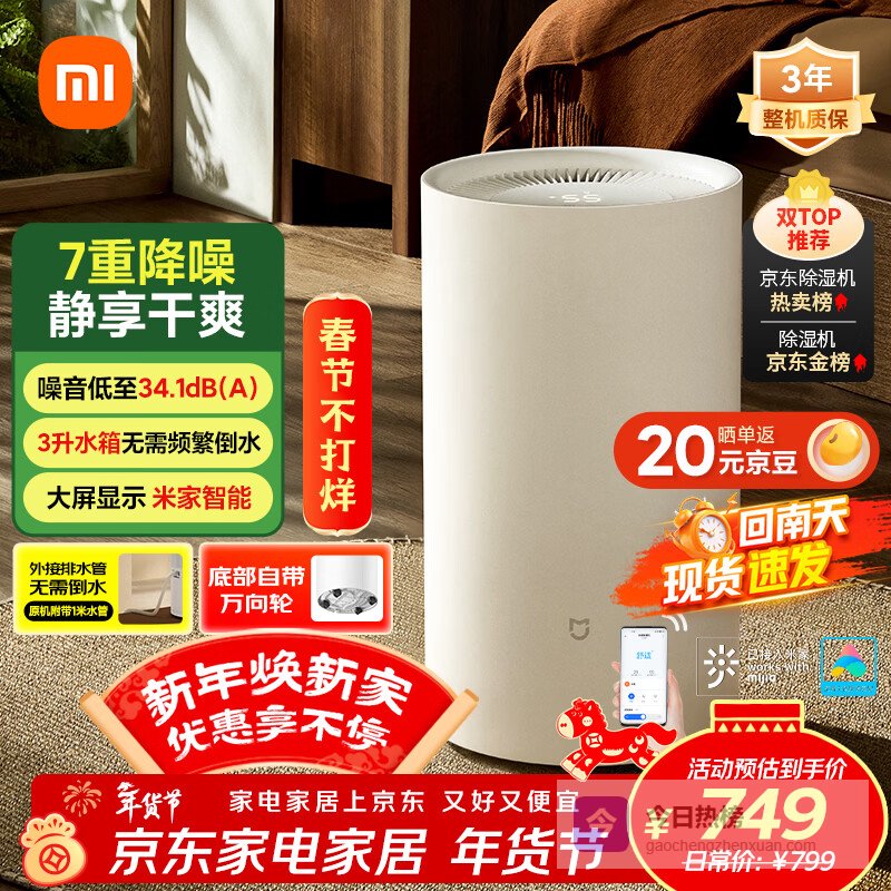 【京东自营】米家小米除湿机除湿器除湿量13L/天7重降噪卧室轻音除潮空气干衣机DM-CS13BFA5¥
