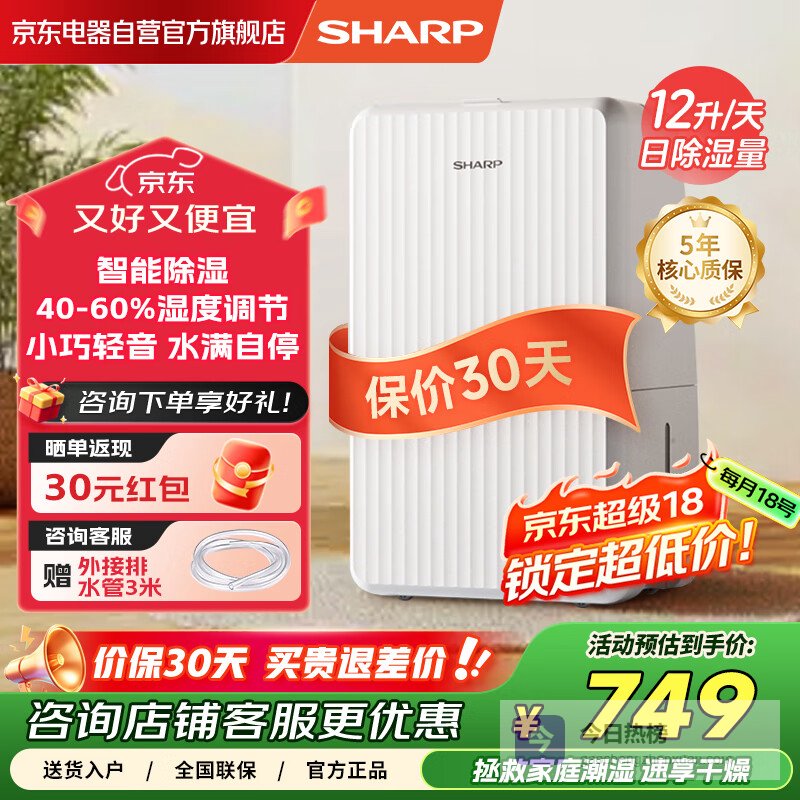 【京东自营】夏普sharp除湿机净化一体机抽湿机家用仓库地下室除湿器大功率吸湿器干燥机泵压上排水无需¥
