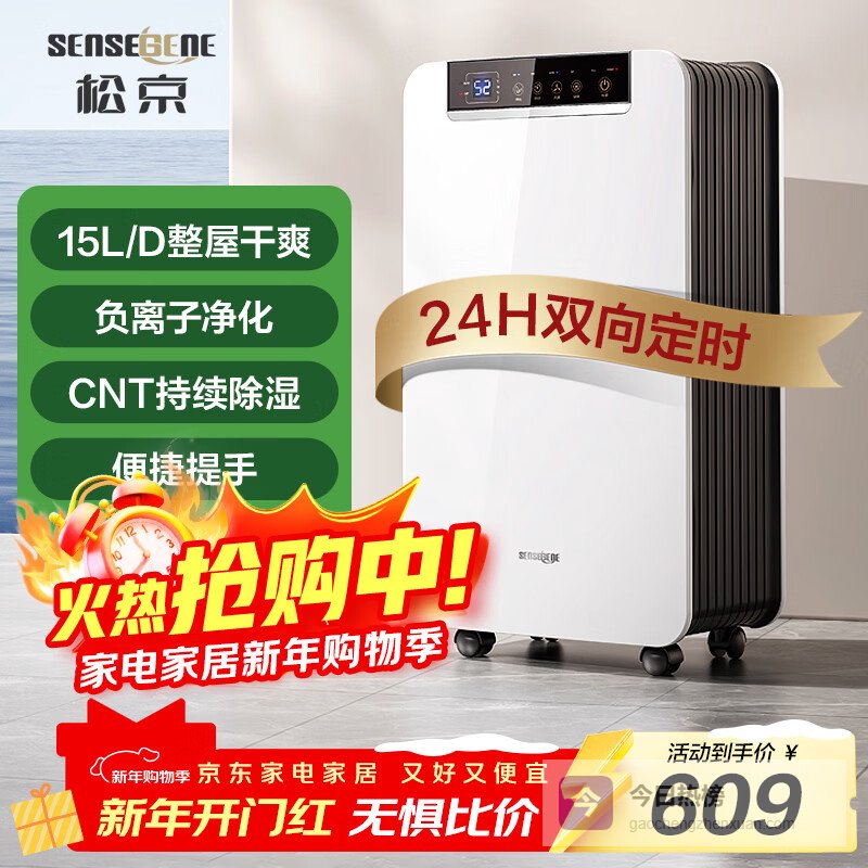 【京东自营】松京除湿机/抽湿机15L/天20-40㎡家用卧室轻音节能净化地下室大功率吸湿器DK01/¥