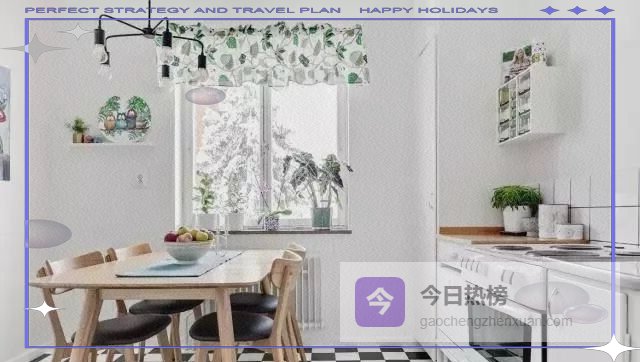 龟背竹花纹的窗幔半开半合,像给厨房拉上一层“春幕”,冬天做饭也能闻到花香