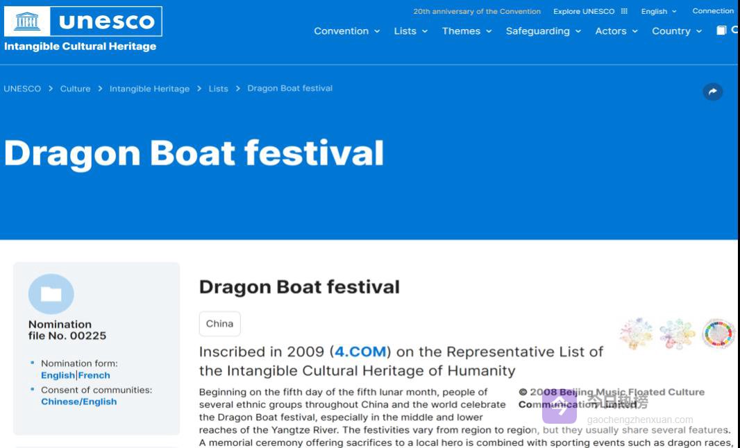 “Dragon Boat Festival”始终作为规范译名出现,连联合国教科文组织的页面也顺手采纳。译名之后常附注“the 5th day of the 5th lunar month”,提醒读者:这并非阳历六月五日,而是中国农历五月初五。