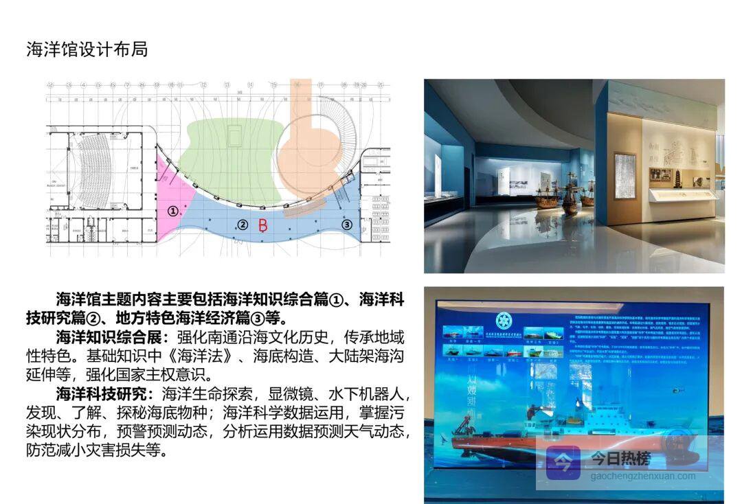 3.1 ▣ 海洋知识综合展——先讲主权,再讲故事南通自古“向海而兴”。展区用1:25万大陆架海沟模型铺陈国家管辖海域,学生伸手就能触摸到“蓝色国界”。配套互动屏实时更新《海洋法》条文,点一下就能看到对应海域的卫星遥感图,主权意识在“哇”声中完成。