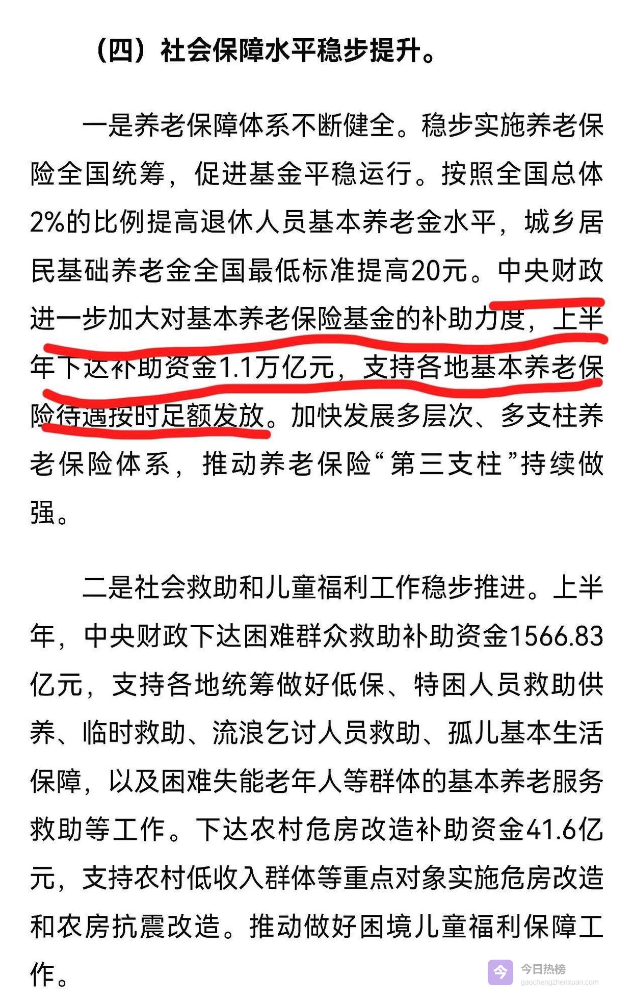 这可不是光耍嘴皮子,是有真金白银撑腰的。瞅瞅2026年中央和地方的预算报告,中央财政专门划拉了1.25万亿元,叫什么“基本养老金转移支付”。这笔钱可是戴着紧箍咒的,专款专用,谁也别想挪去干别的,全部就是用来填补地方养老保险基金的窟窿,确保咱们的养老金能发得出、涨得上。