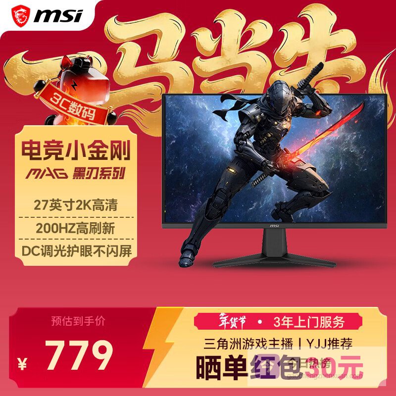 微星(MSI)27英寸2K200Hz游戏电竞显示器27 0.5ms 快速液晶IPS 护眼技术 电竞小金刚 笔记本外接电脑显示屏幕 黑刃 原生200Hz MAG 275QF E20¥