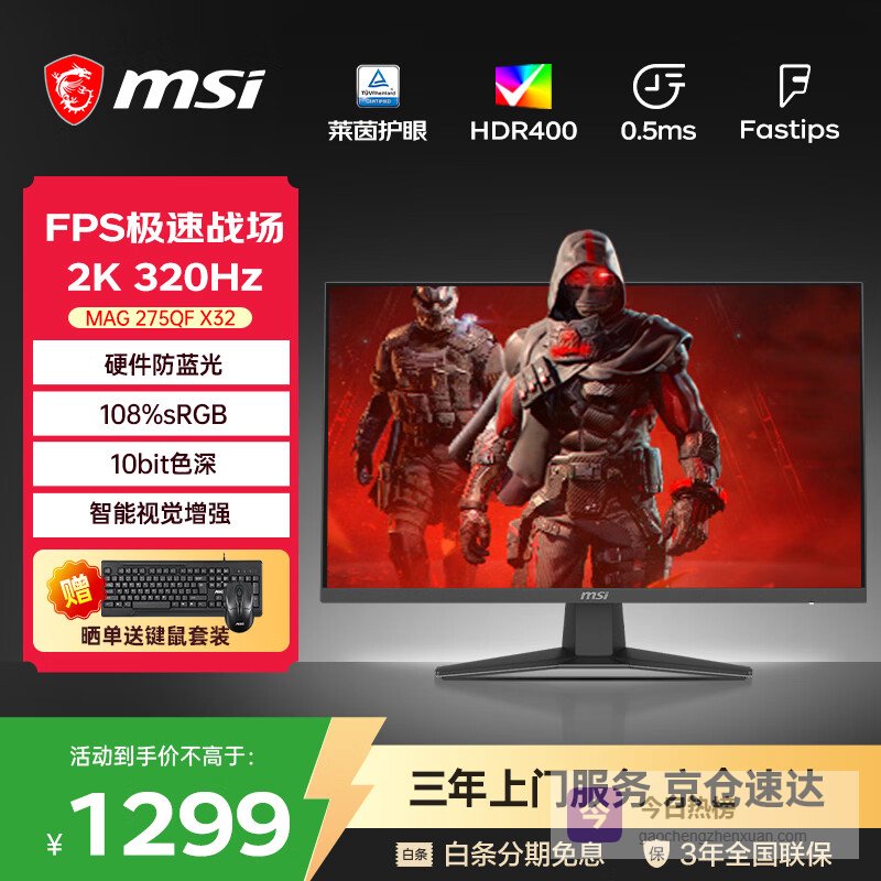 微星(MSI)27英寸2K原生300Hz HDR400 0.5msGTG Fastips快速液晶 低蓝光显示屏游戏电竞显示器 MAG 275QF X32 2K320Hz¥