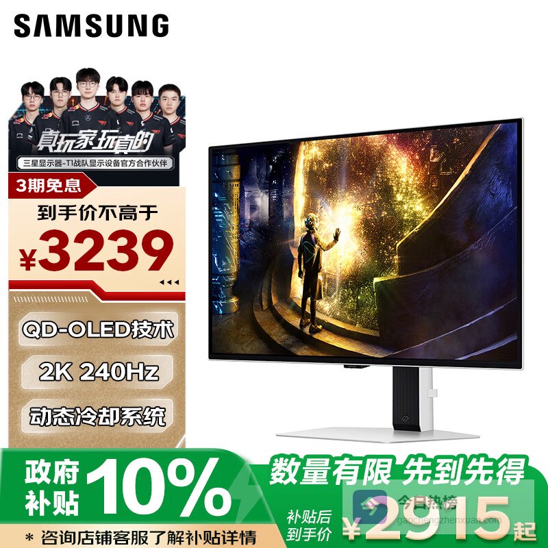 5、三星G61SD这款三星电竞显示器,采用OLED面板,色彩是真的棒!10.7亿色和99% DCI-P3色域,静态对比度高达1000000:1,无论是游戏还是影音,都能呈现出丰富逼真的画面。它还通过了德国莱茵TUV低蓝光认证,能有效过滤有害蓝光,长时间使用眼睛也不容易疲劳。