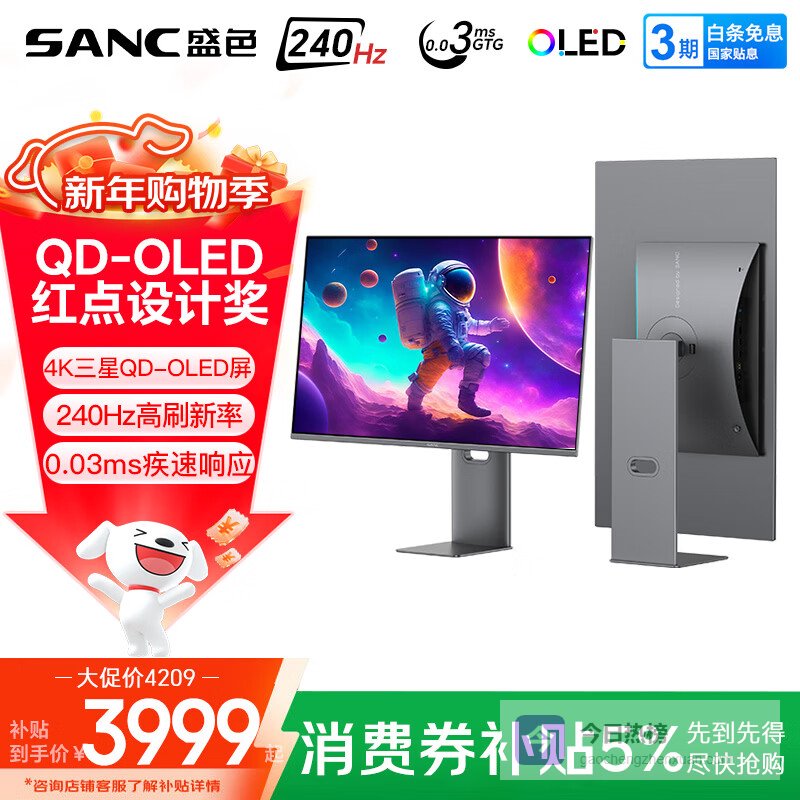 SANC盛色 32英寸三星量子点QD-OLED面板4K 240Hz电竞显示器 0.03msGTG Type-C 90W OM32uPro¥
