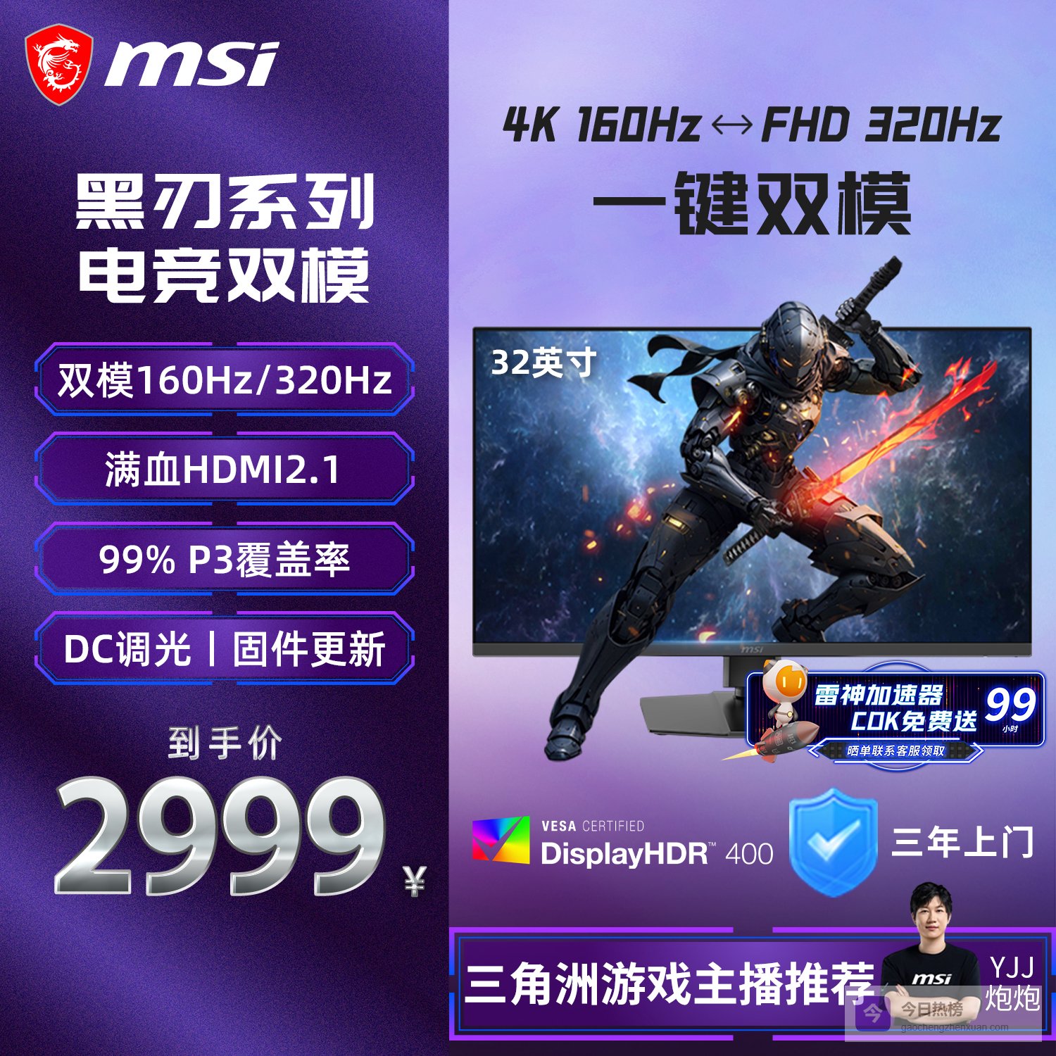 微星(MSI)黑刃E16 MAG 322URDF E16 32英寸显示器4K电竞显示器4K显示器 4K160Hz双模1K320Hz HDR400 HDMI2.1¥
