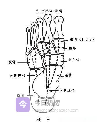 2.3 ◆ 横弓:非负重状态下的“隐形桥梁”由第1~5跖骨头与内侧、中间、外侧楔骨搭成, 仅在非负重时存在,最高点位于中间楔骨,像一座随时待命的临时桥。