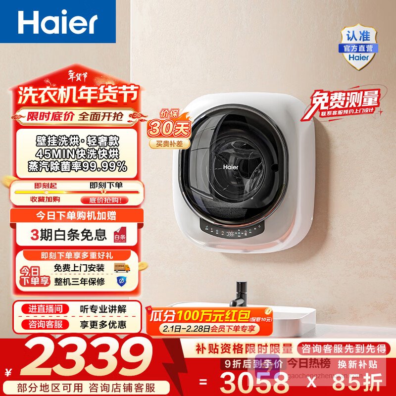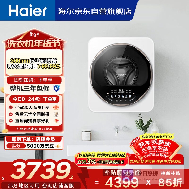 海尔(Haier)壁挂洗衣机洗烘一体全自动 3KG 母婴分区 迷你小型内衣裤洗 精华洗 除菌 补贴XQG30-GHE68WNU1¥