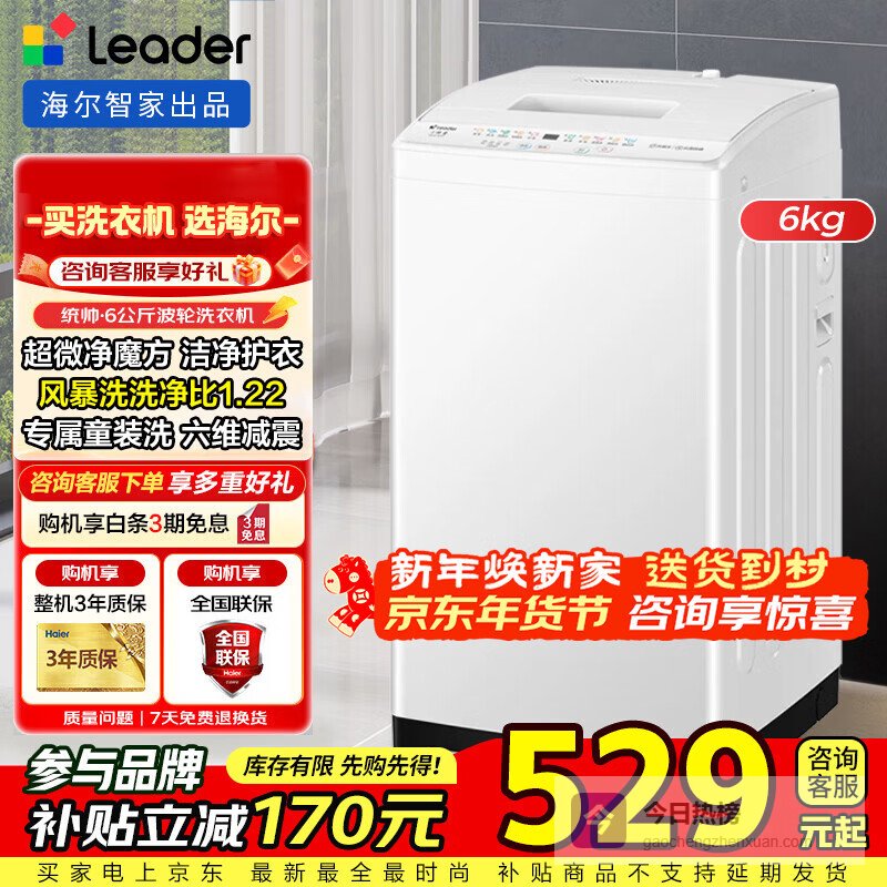统帅(Leader)2025年新款海尔智家出品波轮洗衣机全自动 6公斤迷你小型家用风暴洗 出租房 换新补贴母婴儿童洗 波轮 6kg 【超微净魔方】六维减震+童装洗+除螨洗¥