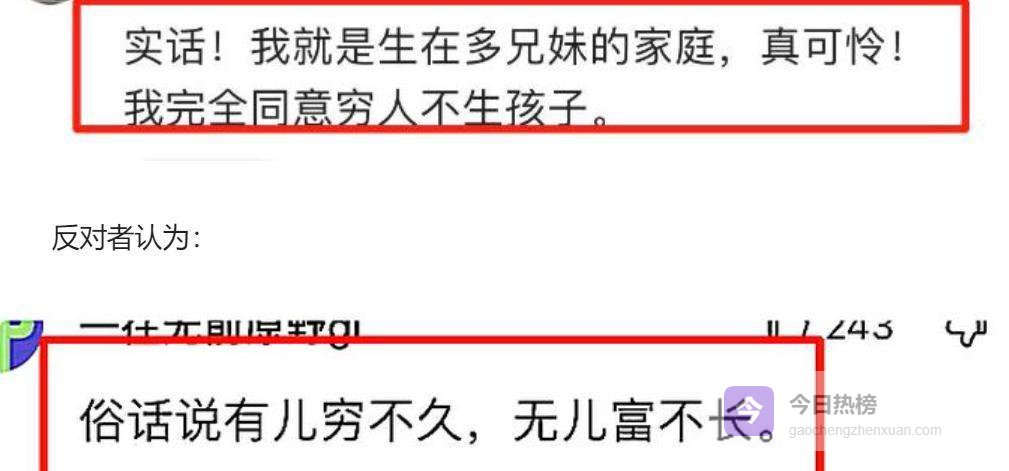 反对的声音同样不留情面,有人直接回击说“往上数三代,哪个家不是穷人”,觉得穷人也有生孩子的权利,不能用钱来衡量父母的爱。