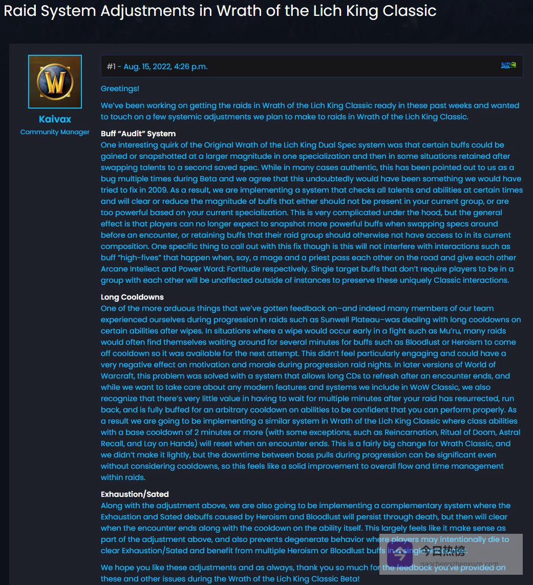 巫妖王之怒的双专精机制曾让不少玩家钻空子:把战斗前切天赋当成“免费外挂”,把另一专精的增益Buff一口气吃干抹净,切回主专精后还能持续享受收益。B测期间这类“快照Buff”的异常报告蜂拥而至,暴雪在2009年没能彻底根治,如今终于动手。