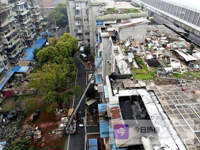 在北苑社区112小区105门楼顶,一位老人曾多次独自清理堆积杂物,但因楼顶空间狭窄、作业危险,效率低、风险高。起初老人对街道社区的协助方案心存顾虑,坚持自己慢慢来。经子女反复劝说和工作人员多次上门沟通,老人最终同意配合。钢花村街道执法中心迅速组织人员“爬梯子、钻天井”,现场踏勘、量身定制方案,并出动云梯垃圾清理车,高空作业、精准清运,将积存多年的楼顶垃圾彻底清除。
