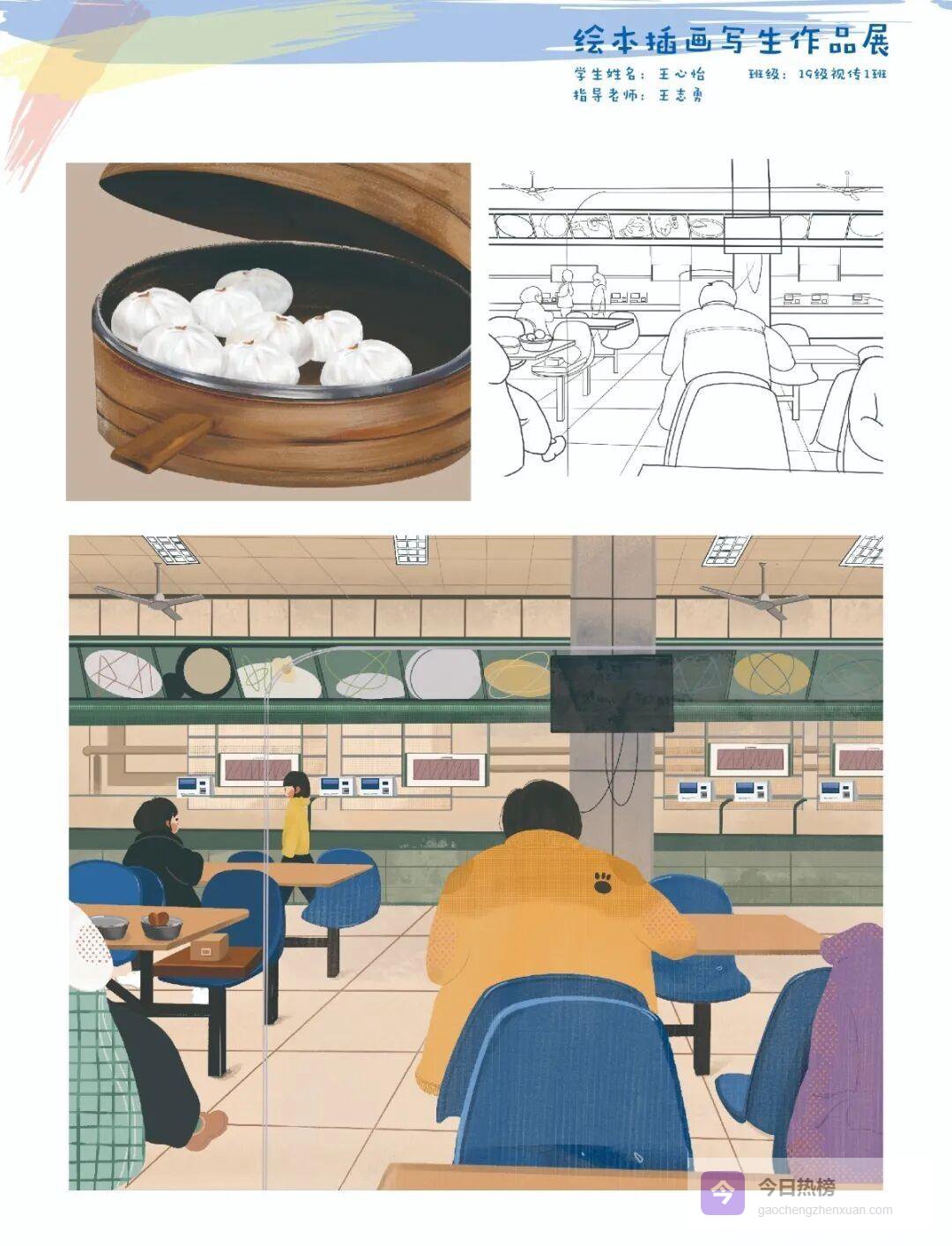 王心怡把圆楼晨签、双子塔日落、天桥夜景统统收进一张张插画绘本里。“板绘让我学会把散点的时间拼成一条可以握在手里的故事”。她说,最难忘的是定草图——线条歪了擦,擦了画,像和自己拔河;当老师轻轻一句“再大胆一点”,她突然明白:画画不是复制眼睛,而是复制心跳。