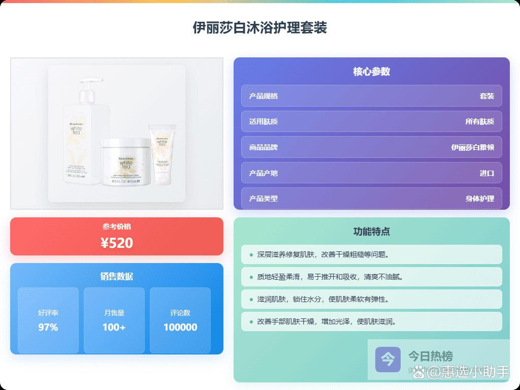 2026年必看!伊丽莎白雅顿护手霜怎么样,认准这几款错不了1、伊丽莎白沐浴护理套装