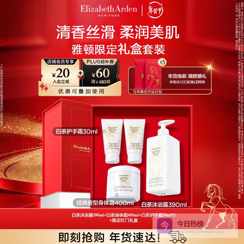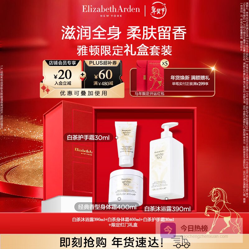 伊丽莎白雅顿白茶身体霜400ML+白茶护手霜30ml+白茶沐浴露礼盒送朋友新年礼物¥
