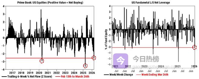 对冲基金持续净卖出:高盛主经纪商周报显示,对冲基金已连续六周净卖出美国股票,近期净抛售规模位列过去十年第三大,主要源于个股的多空双向减仓,同时宏观产品的空头仓位也有所贡献。