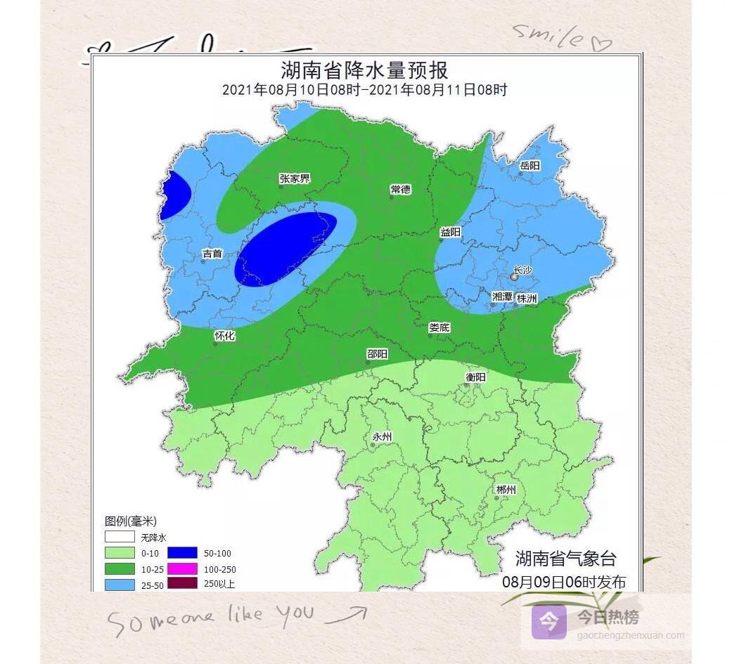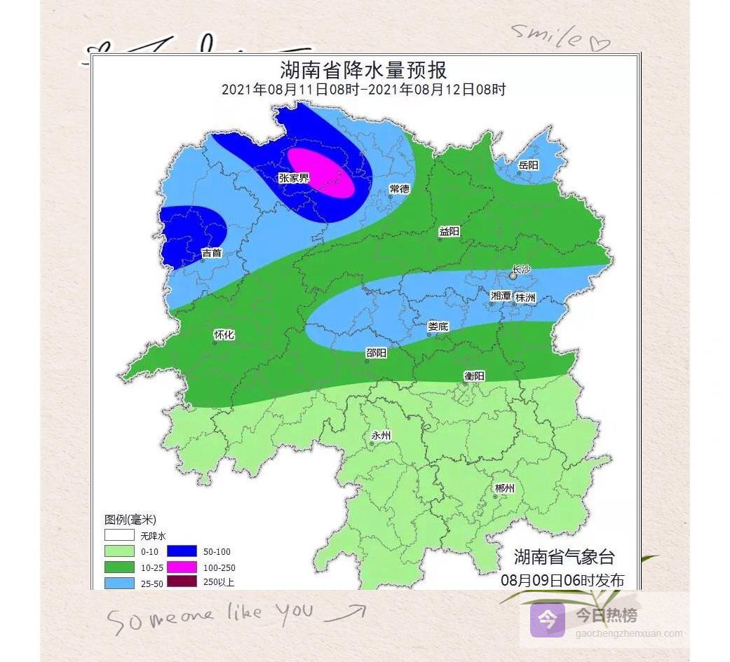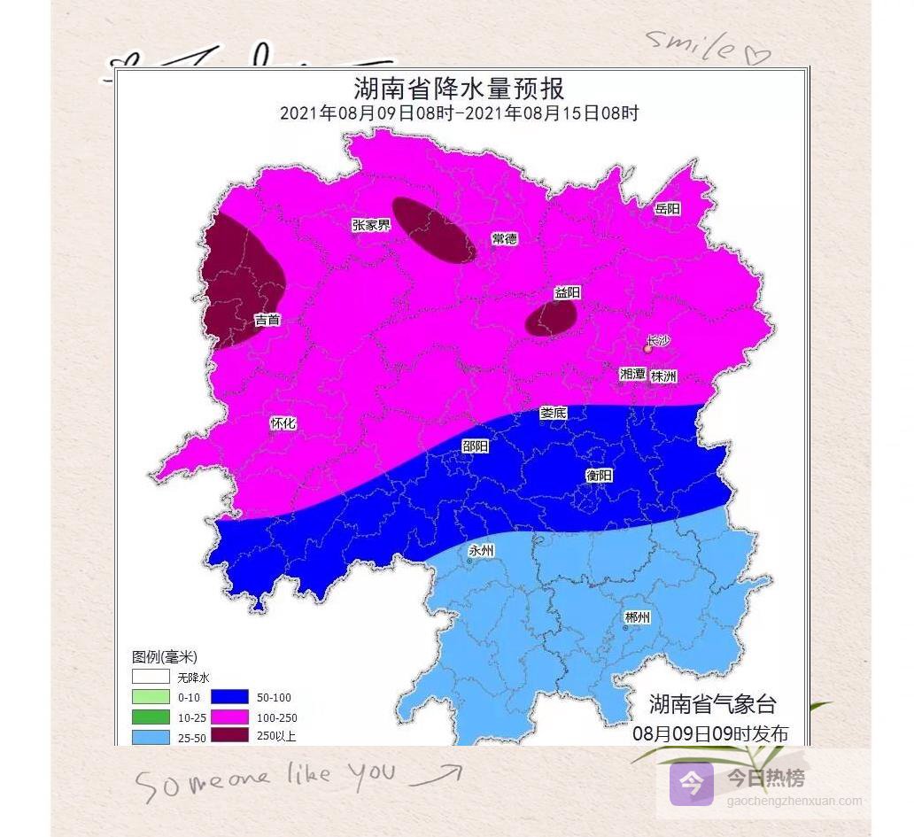 9—14日,湘中及以北地区累计雨量60—120毫米;湘西州、张家界、常德西部、怀化北部、益阳、岳阳、长沙北部、娄底西部局地150—200毫米,最大可达280毫米;其他地区25—40毫米。