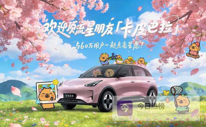 同时,为了贴近用户对松弛感、治愈感生活方式的追求,吉利星愿正式官宣与顶流“星”朋友卡皮巴拉小黄豚跨界联动,为60万老车主带来丰厚福利,车主可通过银河APP抽取卡皮巴拉盲盒和相关福利。