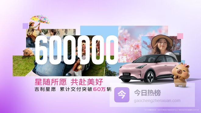 从0到60万辆,吉利星愿与用户一起创造536天60万辆交付的“中国速度”,坐实了自己车圈“纪录收割机”的地位。站在60万辆的全新起点,吉利星愿将继续坚持安全不妥协,品质不将就,服务不打折,信赖不辜负,以不断进化的产品力与“银河式宠粉”的温度,与用户共赴美好生活,并驱动吉利银河从市场的引领者,迈向未来出行生活方式的定义者。选择A0级小车,就是吉利星愿。