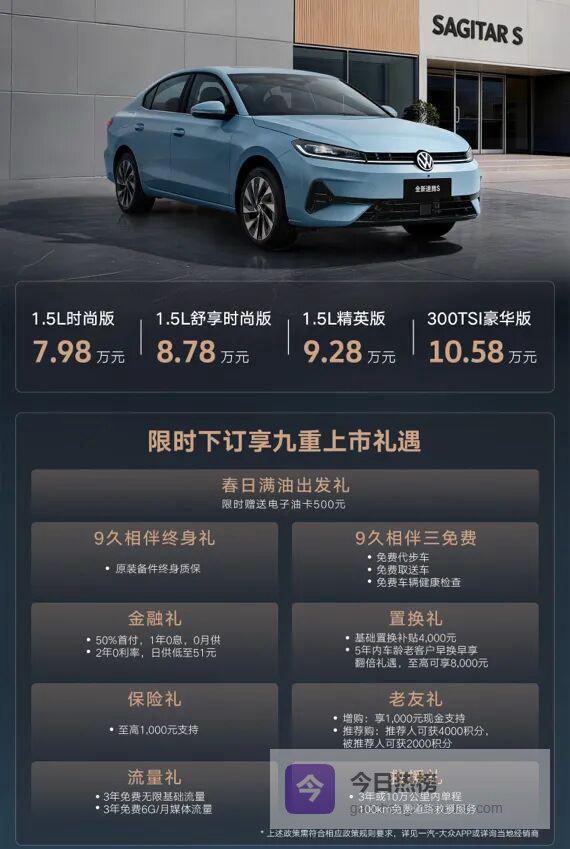 全新速腾S此前已于3月25日启动盲订与价格竞猜活动,截至上市当日,前期预热已积累大量潜在用户。官方同步公布上市专属权益:即日起至3月31日,用户通过一汽-大众官方渠道下订,并在4月30日前完成开票核销,可享受1000元抵3000元加油基金;参与官方价格竞猜,报价与最终指导价最接近的前1000名用户,将获得官方专属礼品。