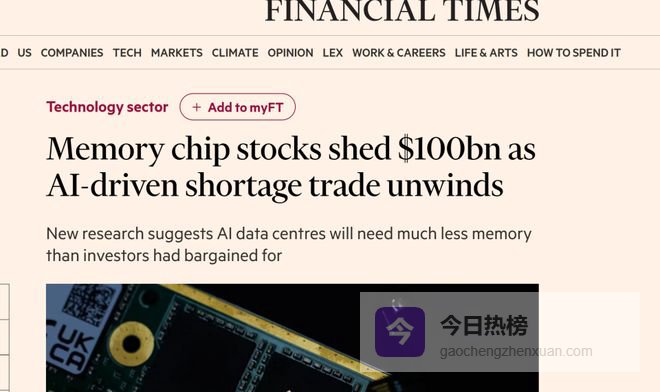 【环球网科技综合报道】3月30日消息,据Financial Times报道,谷歌发布TurboQuant算法相关研究成果,引发美国资本市场连锁反应,内存芯片板块遭遇集中抛售,一周内相关上市企业市值累计蒸发近1000亿美元,市场情绪出现明显调整。
