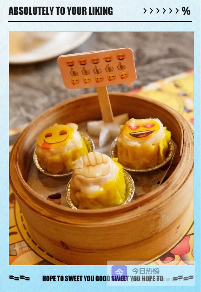 踏进餐厅,首先撞进眼里的不是饕餮盛宴,而是像短信界面一样排布的菜单:哭脸流沙包、大笑烧卖、摊手芒果布甸……文字被替换成表情,连菜名都自带戏感。老板说,Emoji 每天都在手机上陪大家“聊天”,把它搬到点心上,能让顾客一眼就产生亲切感,仿佛食物也在演一出“每日表情包连续剧”。