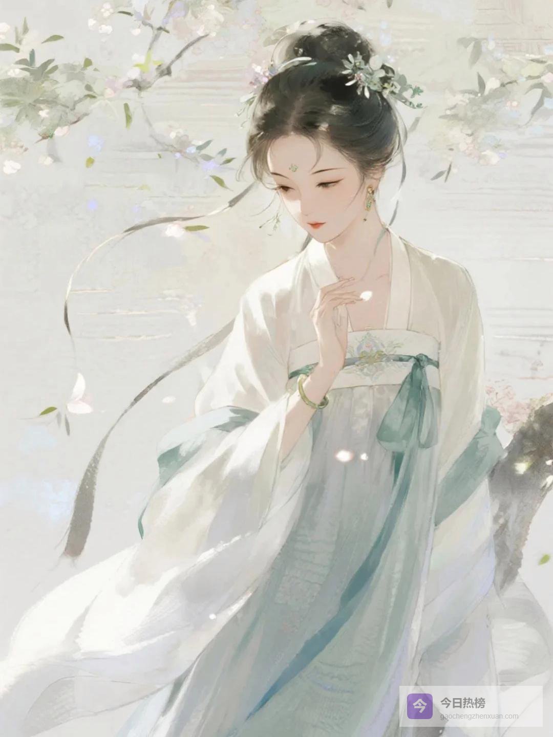 她淡淡地施了一点脂粉,妆容是新束的,清清爽爽的模样。那种风韵不是用脂粉堆出来的,是骨子里自带的。天然去雕饰,一站在那里就和旁人不同。