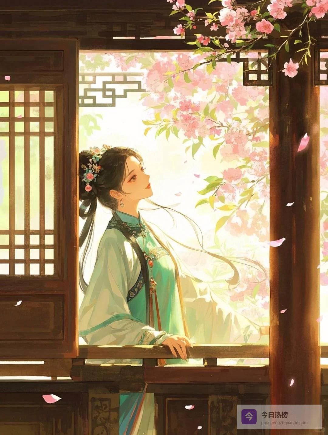 她不好意思再看了,赶紧转过身,拈起门边一枝青梅凑到鼻尖,假装在闻花香。可谁都看得出来,她的心思根本不在梅花上。