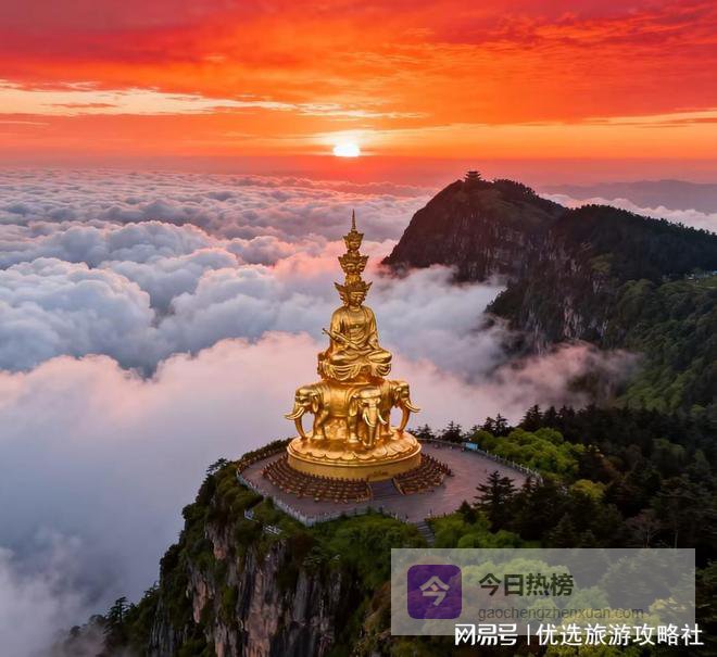 第四天:成都→峨眉山→金顶从成都驱车前往峨眉山,拾级登上金顶。云海在脚下翻涌,如波涛汹涌的大海,偶尔佛光闪现,仿佛置身仙境。万佛顶上风过衣袂,人如芥子,融入天地浩渺之间。