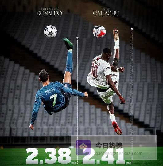 更令人瞠目结舌的是数据。当时奥努阿楚这记倒钩的抬脚高度达到了2.41米。这是什么概念?这打破了此前由C罗保持的2.38米的纪录(此后这一纪录,被麦克托米奈在世预赛苏格兰对阵丹麦比赛中打进的倒钩进球所打破,2.53米)。在那一刻,奥努阿楚的鞋钉,比很多球员跳起来的头顶还要高。一个身高2米、体重接近100公斤的男人,在空中完成了如此极限的拉伸与发力,这简直是一场反重力的视觉冲击。